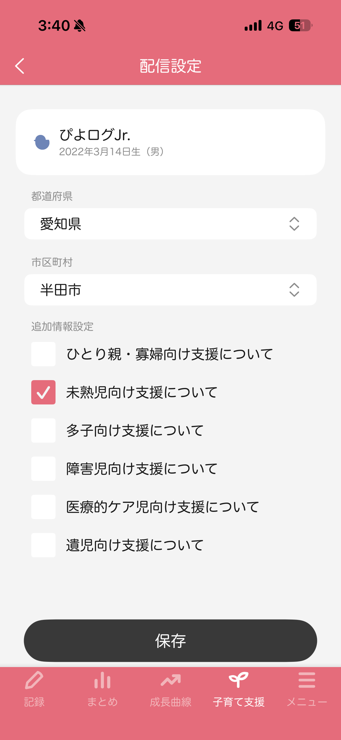 住んでいる場所と月齢に合わせて、必要な情報だけが届く