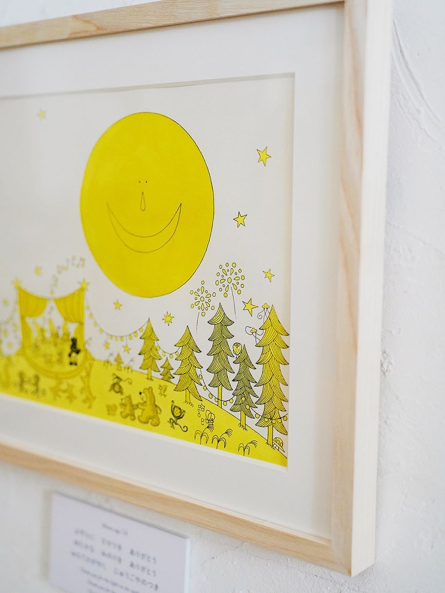発売に先駆けて、都立大学駅近くのニジノ絵本屋にて原画展を開催中です。新作のおつきさまの絵本グッズや、販売ミニ原画など、多数ご用意されています。