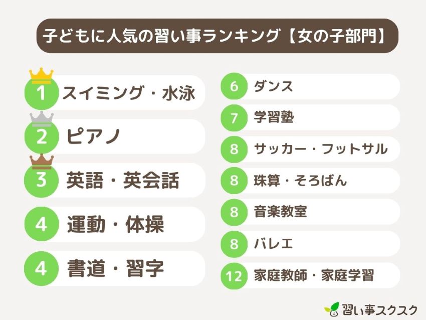 > 監修者の詳細はこちら「そろそろ何か習わせたいけど、何がいいの?」と迷う時間は、忙しいパパママにとって貴重なものですよね。今回は、最新の調査結果をもとに、0歳から12歳の子供を持つ550人の保護者が選んだ「本当に通わせてよかった習い事」をランキング形式でご紹介します。